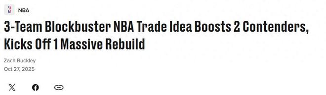 在新赛季开打一周各支球队逐步认清自身状况之际,美媒《bleacherreport》结合勇士、活塞与雄鹿三支球队的状况与需求晒出一笔各取所需的3方交易方案,通过交易字母哥联手库里,巴特勒则加盟黑马活塞。